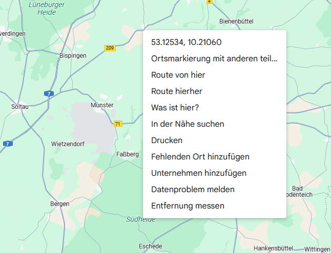 - Achtung! Die Koordinaten sind „falsch herum“, z.B. wird eingefügt: 54.39739628535497, 12.915475407597095 (Breitengrad/Längengrad)